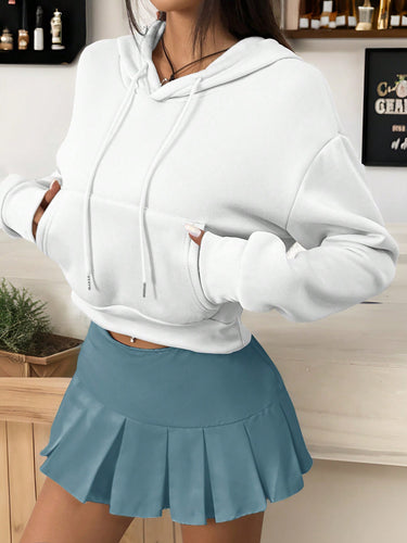 weat-shirt à capuche court décontracté pour femmes, avec manches longues, épaules tombantes et cordon de serrage, couleur unie, automne/hiver Blanc