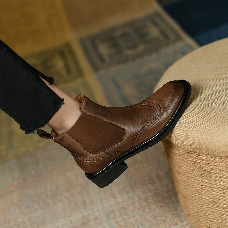 Boots en cuir véritable pour femmes, bottes sculptées rétro, bottes rondes Parker Rinse