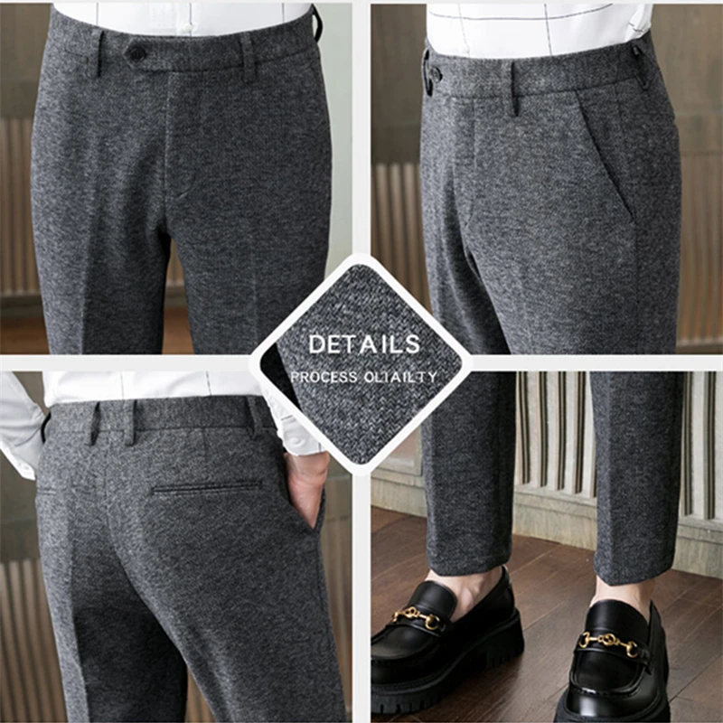 Pantalon décontracté pour hommes, mélange chaud d'automne et d'hiver, brossé, design taille moyenne, gamme de tailles 28-38.