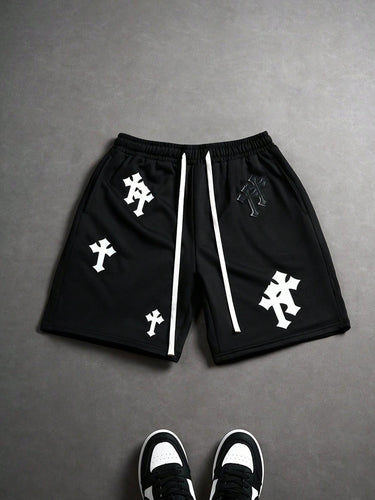 Shorts décontractés pour hommes avec imprimé croix, taille à cordon et poches