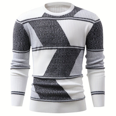 Pull à manches longues tricoté en faux perle, avec un contraste de couleurs en diamant, pour homme. Style décontracté, avec des détails côtelés, une tissu extensible, un motif géométrique, une coupe régulière. Idéal pour l'automne/hiver.