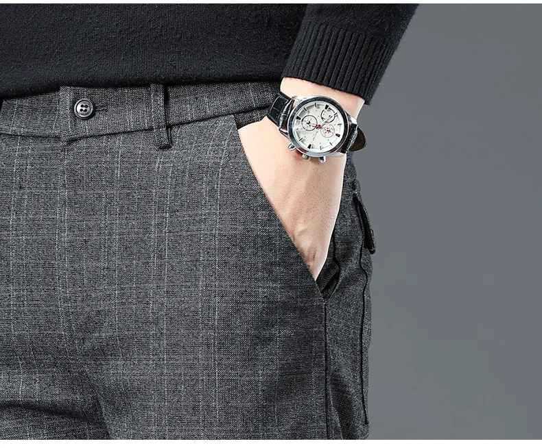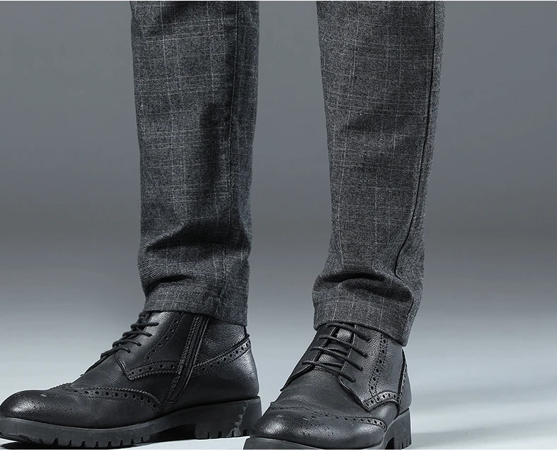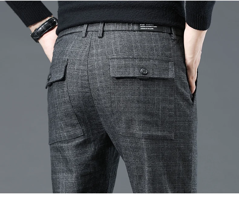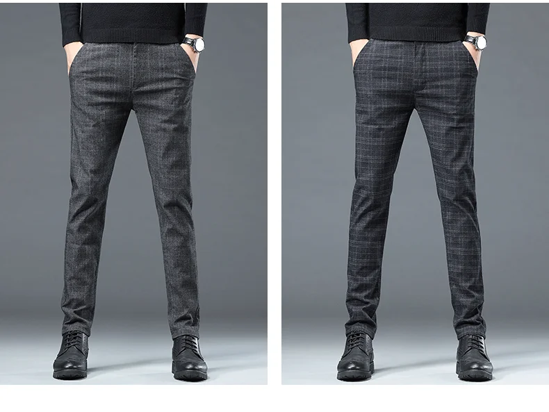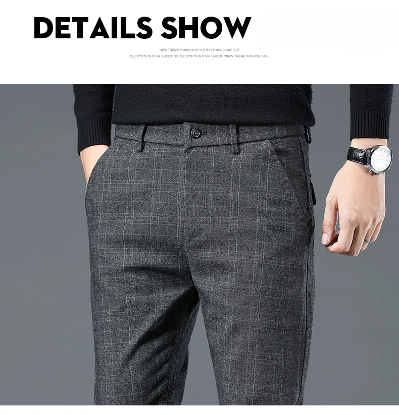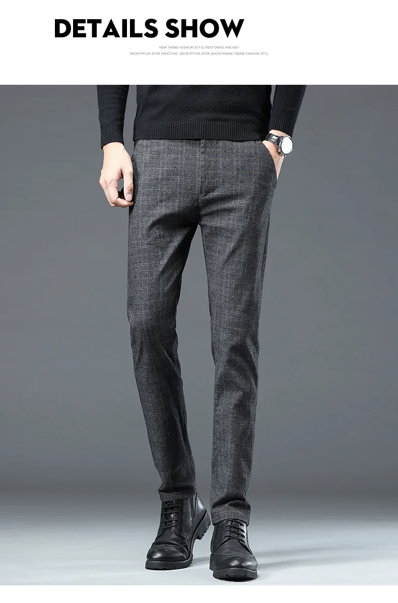 Automne hiver nouveau polaire épaissi pantalons décontractés hommes d'affaires droit mince pantalon à carreaux noir gris hommes pantalons chauds