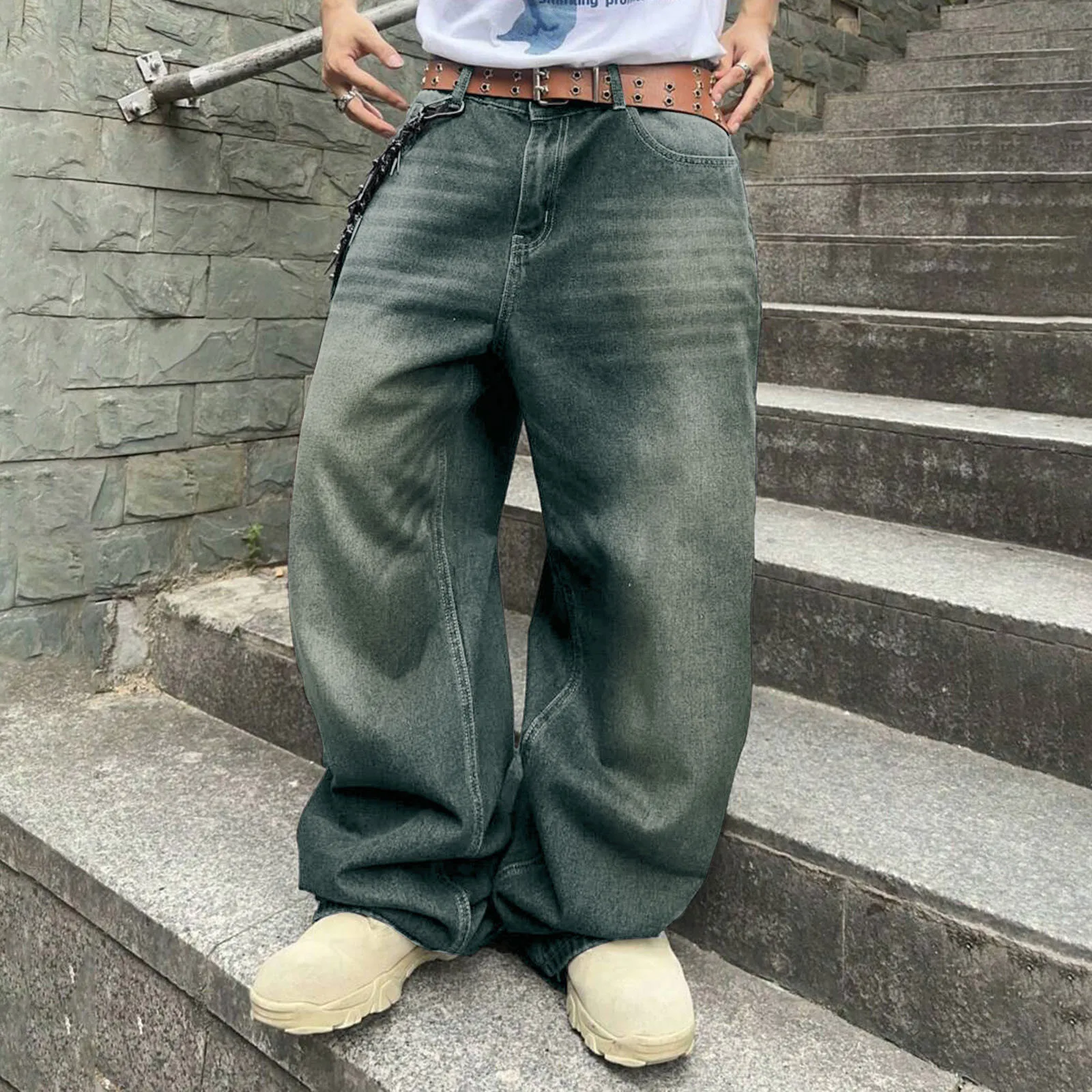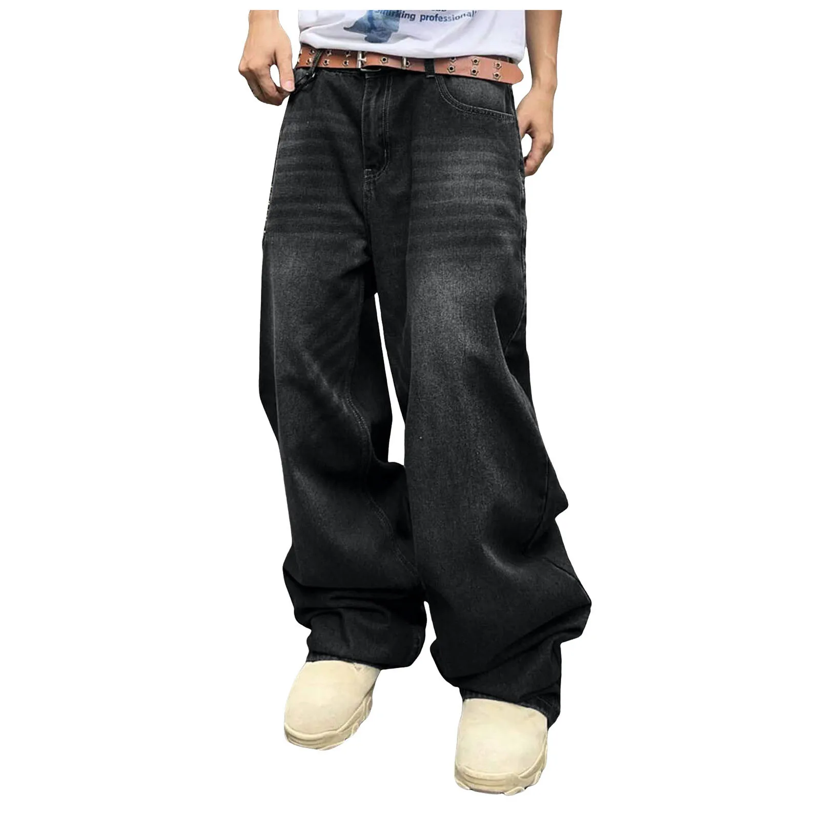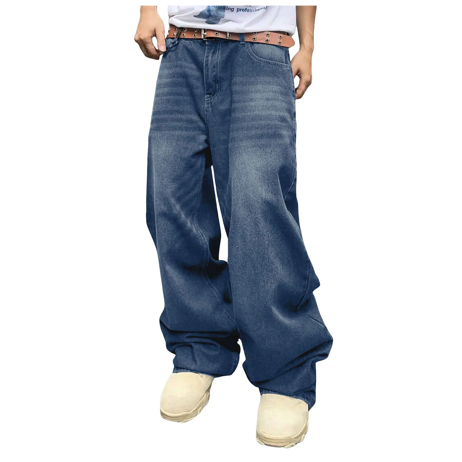 Jeans baggy Hip Hop pour hommes pantalon en jean patineur à jambes larges pantalon long décontracté coupe ample Streetwear