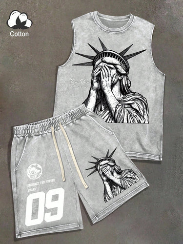 Ensemble casual homme composé d'un débardeur col rond avec imprimé lettres et d'un short à cordon de serrage à la taille