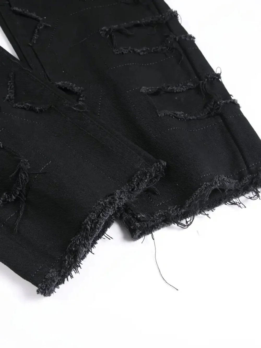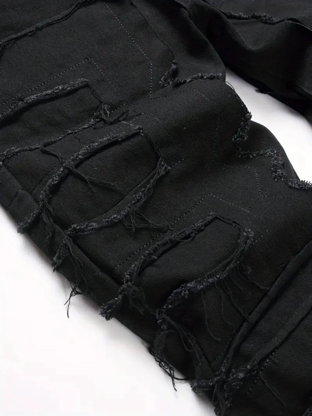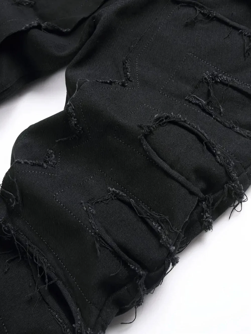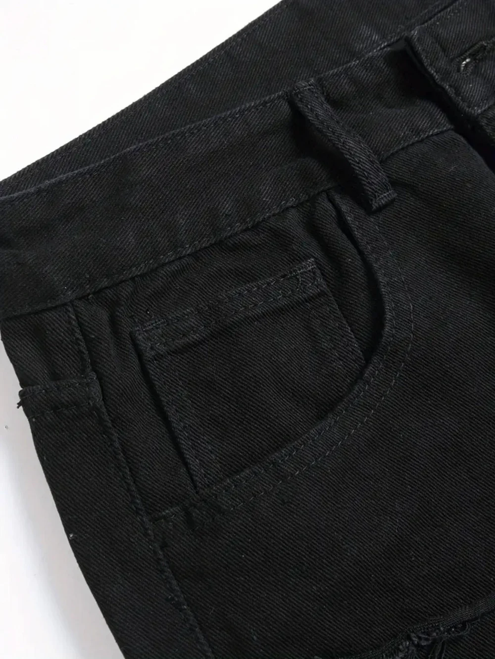 Jeans évasés minces épissés empilés pour hommes, pantalons de moto, style hip hop, bonne qualité, denim droit, rue, mn