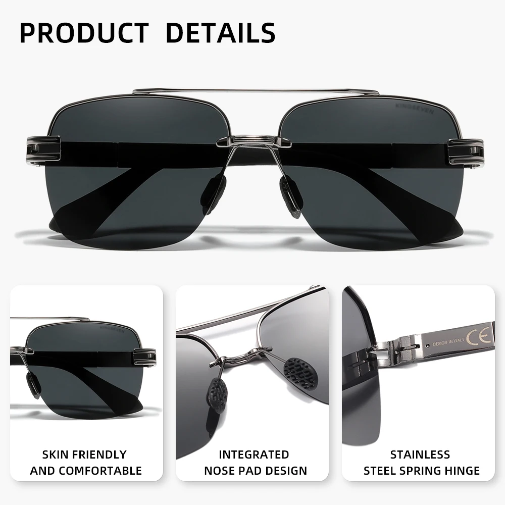 lunettes de soleil polarisées rectangulaires à demi-monture pour hommes, de haute qualité, pour la conduite décontractée Gun Photochromic
