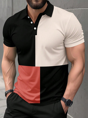 Chemise polo à manches courtes décontractée et simple pour hommes, avec imprimé patchwork