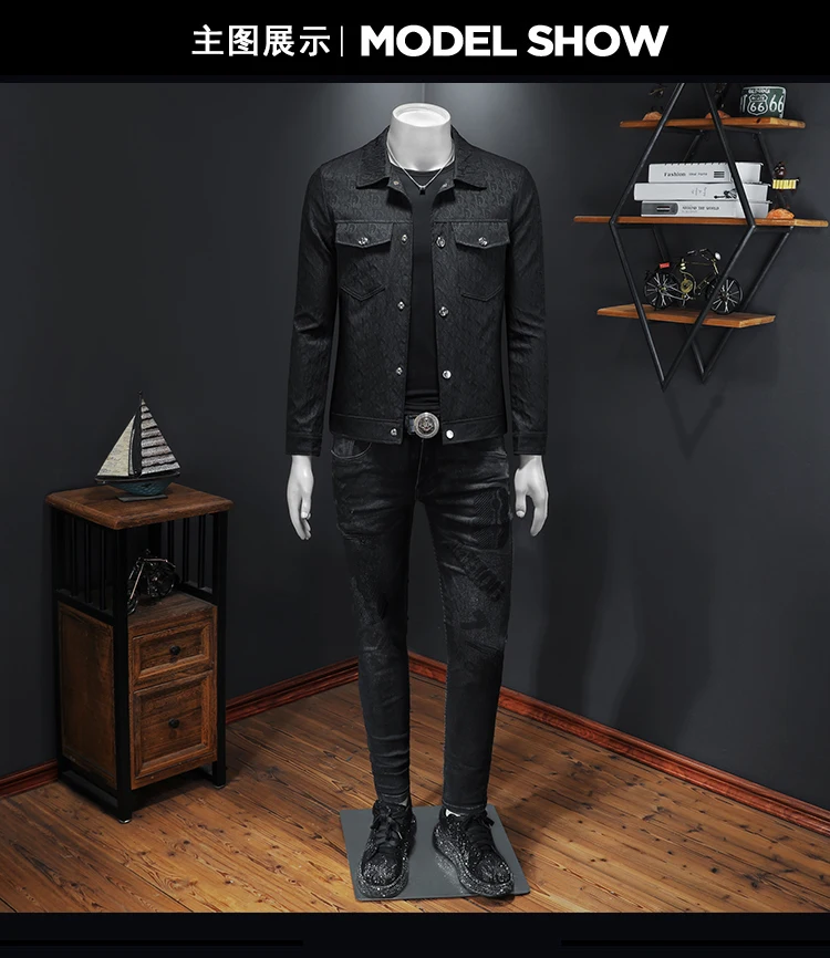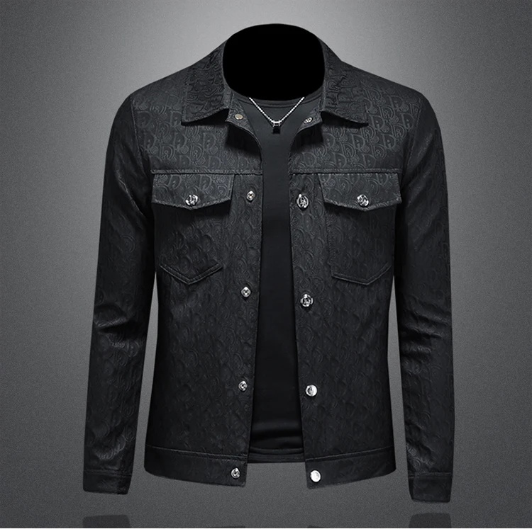 Veste Jacquard classique pour hommes, haut de gamme, Style de rue, manteau à revers fin et longueur régulière, nouvelle collection automne