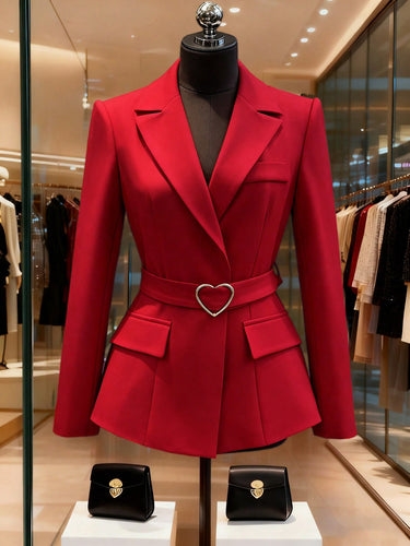 Blazer élégant pour la Saint-Valentin avec décoration en forme de cœur rouge pour femmes