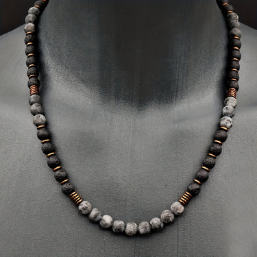 1pièce Collier de perles de pierre noire avec accents en cuivre - Chaîne élégante et polyvalente pour hommes et femmes, parfaite pour un usage quotidien ou comme cadeau, bijoux quotidiens | Chaîne de perles de pierre | Chaîne durable, bijoux en pierre