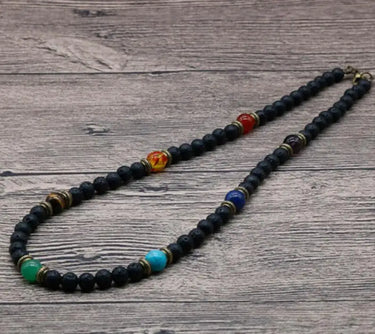 Collier Chakra classique pour hommes, pierre de lave naturelle, Colliers spirituels tribaux, Punk, ras du cou court, Erkek Kolye, cadeau pour petit ami
