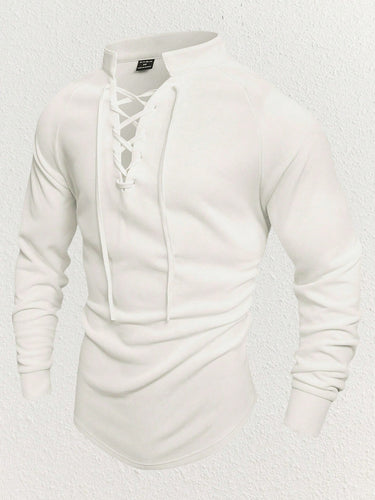 T-shirt casual à manches longues tricoté pour hommes avec laçage au col, cadeau pour petit ami, hauts blancs pour hommes, t-shirts blancs, été, pour l'automne, accessoires de couple