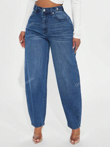 Pantalon cropped en jean bleu rétro avec un sens du design des lanternes pour femmes