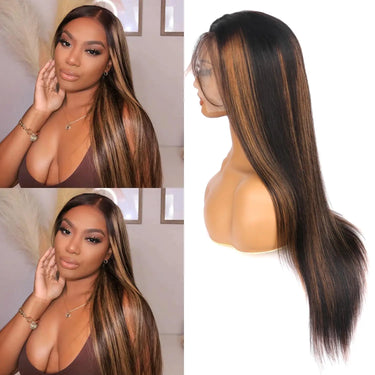 13x6 1B/30 mettre en évidence Ombre perruque cheveux humains 200% densité droite HD Transparent dentelle frontale perruques perruque de cheveux humains pour les femmes 38 pouces