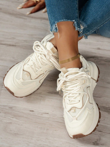 Baskets épaisses et épaisses grande taille, chaussures décontractées respirantes en maille pour femmes, polyvalentes pour les robes, les sports de plein air, avec semelle souple, bout rond, antidérapantes