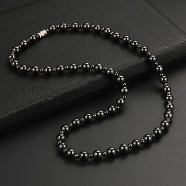 Collier de perles rondes en hématite magnétique de 8 mm et 4 mm pour homme et perles