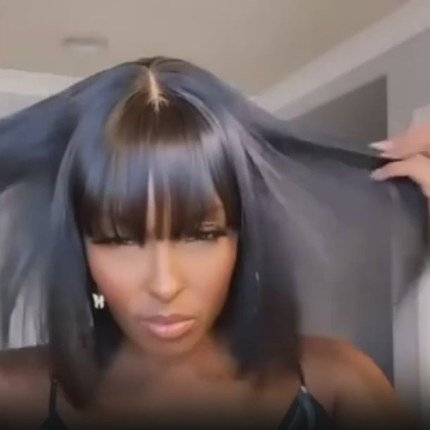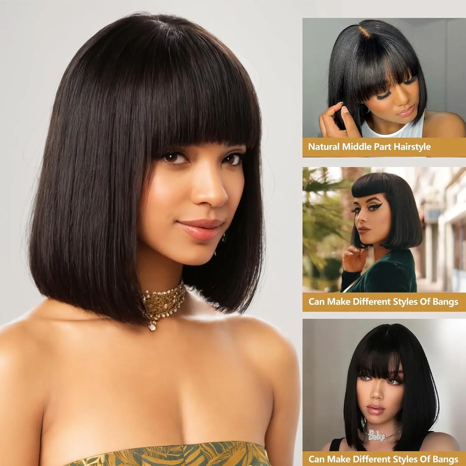 1. Perruque droite avec type de frange : perruque Bob avec frange en cheveux humains, perruque avec frange, perruque droite, perruques courtes pour femmes noires, perruques droites en cheveux humains avec frange.Perruques de cheveux humains avec frange, perruque Bang cheveux humains, perruque sans colle à porter et à emporter.